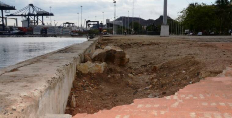 El Camellón de la Bahía, primera imagen de Santa Marta para el turista de cruceros, pide a gritos que lo recuperen. Pisos y adoquines desprendidos, huecos en pasillos, muros agrietados y pintarrajeados con graffitis; esculturas en deterioro, pérdida de la zona verde, deforestación y proliferación de ventas informales, evidencian abandono.