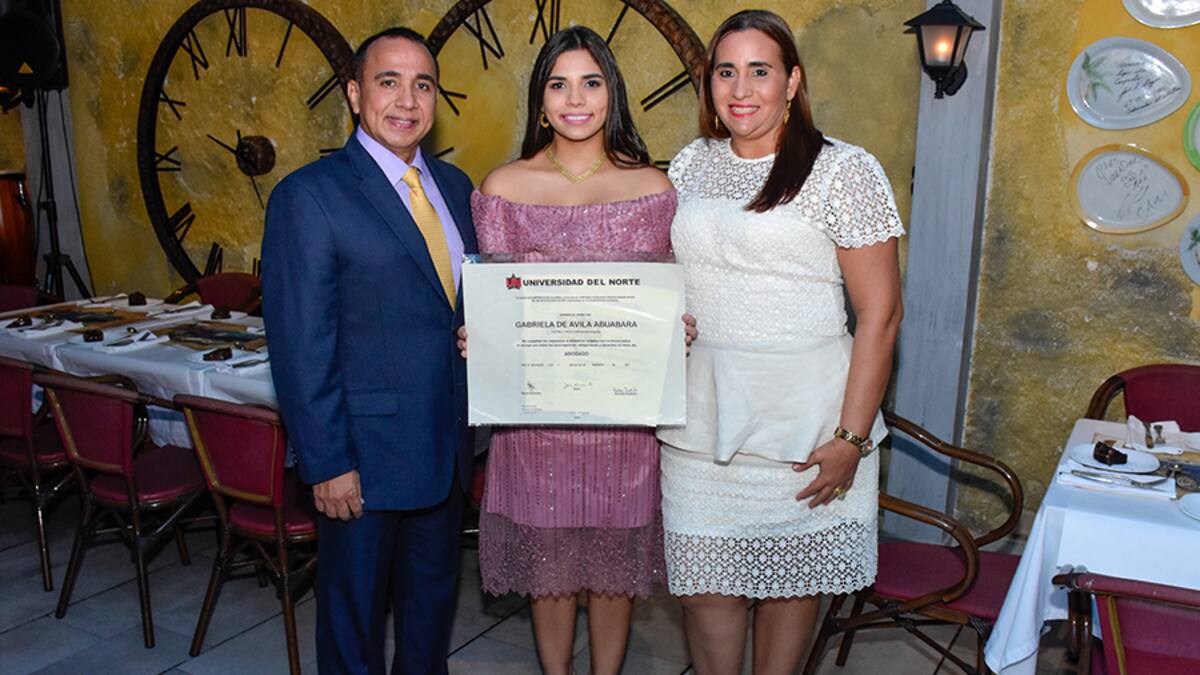 Gabriela De Ávila Abuabara celebró con sus familiares y amigos, en el restaurante Varadero, su grado de abogado otorgado por la Universidad del Norte, en ceremonia oficiada en el Coliseo Los Fundadores.