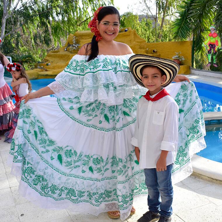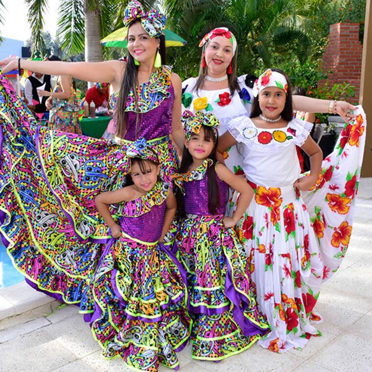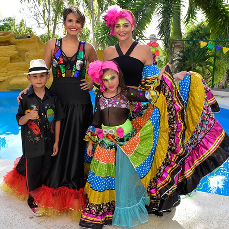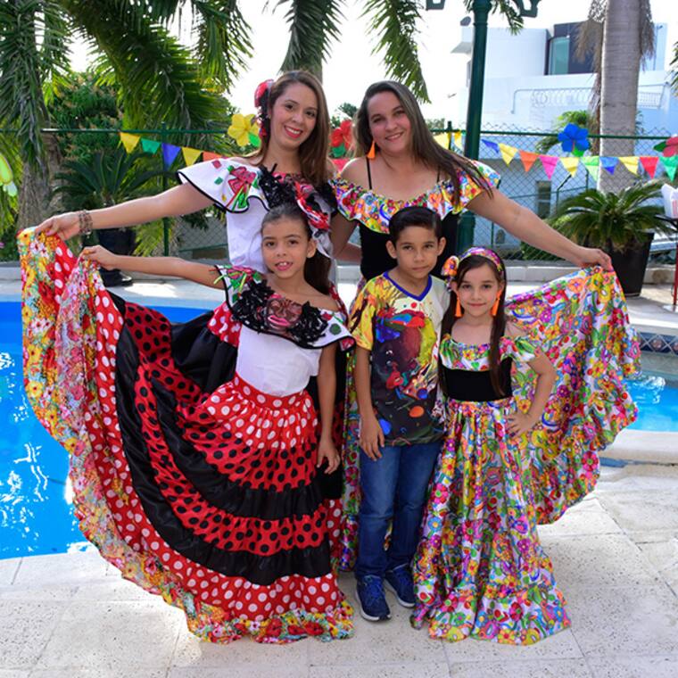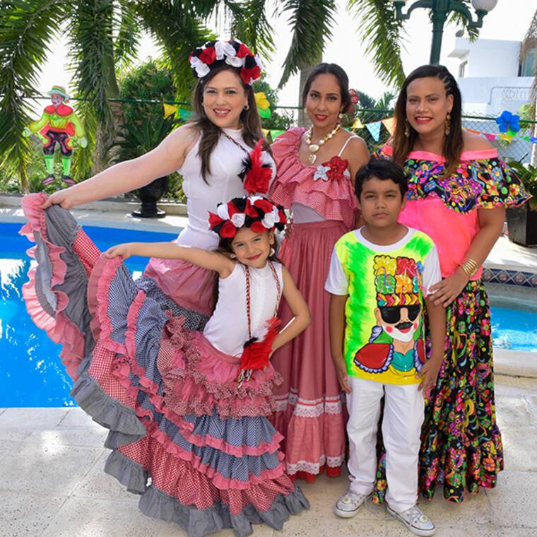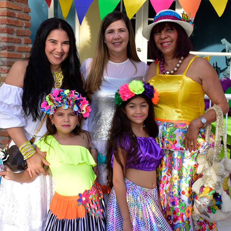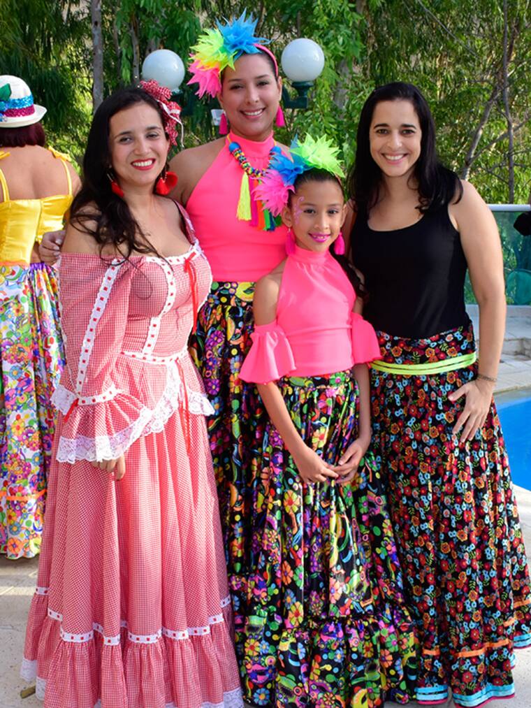 Un grupo de padres de familia y estudiantes del Altamira International School se vistió de polleras con canutillos, flores, lentejuelas y telas vistosas y brillantes, para celebrar el Carnaval en una tarde de integración en Colinas de Pradomar.