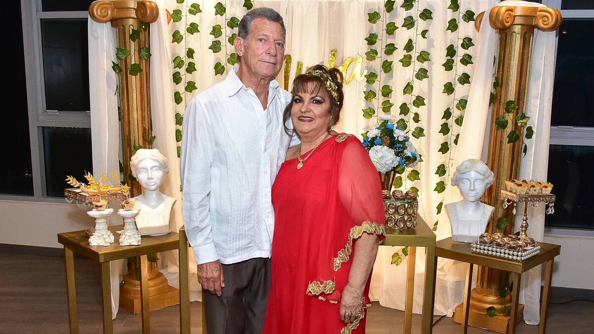 En el salón Sky Bar del Edificio Mirage 57 Ninfa Magaldi de Acevedo celebró con su esposo, sus hijos, familiares y amigos su cumpleaños con una fiesta al mejor estilo griego.