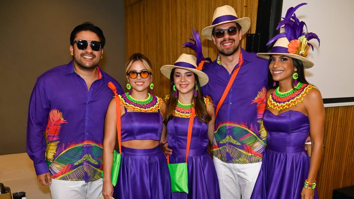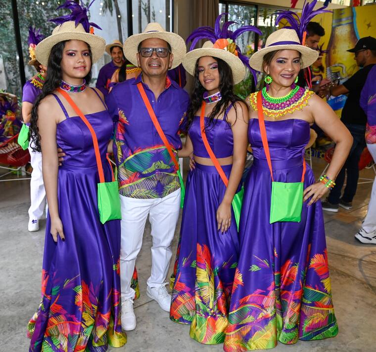 La comitiva de la reina del Carnaval, Natalia De Castro, se dio cita en el Hotel Country Norte, antes de salir al desfile de la Batalla de Flores. Luciendo un vestuario diseñado por la artista Isabella Garman, inspirado en ‘Noche de Palmeras’, que evoca las pasiones del Caribe.