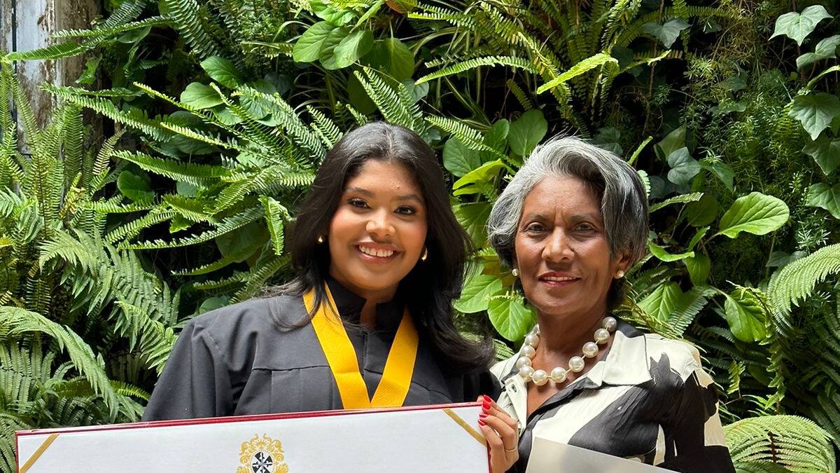 La joven guajira Nohelia, recibió el título en Ciencias Políticas y Gobierno otorgado por la Universidad del Rosario. La acompaña en la foto su mamá Diana Acosta Contreras.