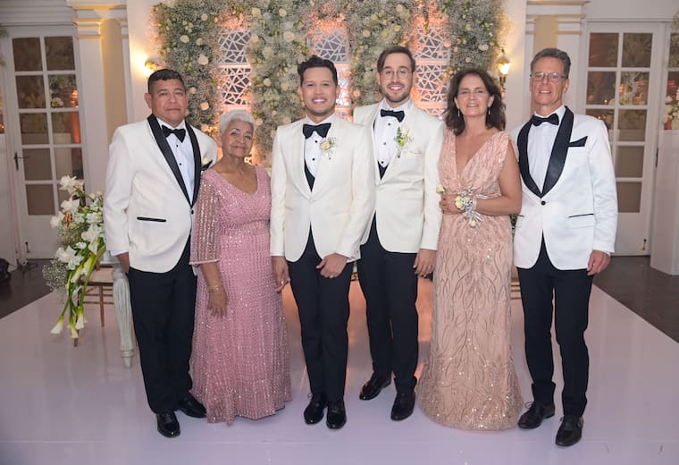 En ceremonia civil unieron sus vidas en matrimonio Matías Mata y Erwin Sarmiento Lambis. Seguidamente ofrecieron una recepción en el Gran Salón de Hotel El Prado, en compañía de sus familiares, amigos y las ex reinas del Carnaval que se unieron a la celebración de #Suizoquillero.