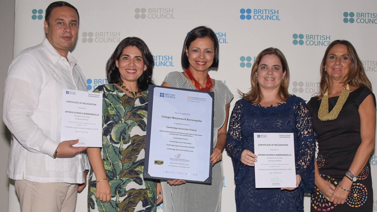 En el marco de la VIII Conferencia Anual de Colegios Cambridge International, que tuvo lugar en las instalaciones del Hotel Dann Carlton, British Council ofreció una cena para entregar reconocimientos a los colegios asociados a Cambridge International en Barranquilla: Aspaen Gimnasio Los Corales, Aspaen Gimnasio Alta Mar y Colegio Marymount.