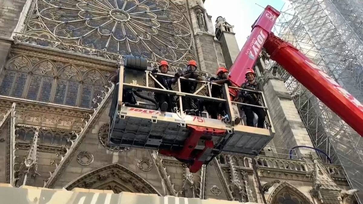Sus trabajos diarios rozan el malabarismo: un hombre escala con cuerda sobre las bóvedas de la iglesia, un grupo de técnicos busca la fórmula mágica para contener con veinte vigas, cada una de ellas de dos toneladas, el andamio que se quemó en el incendio y que amenaza con derrumbar el edificio...