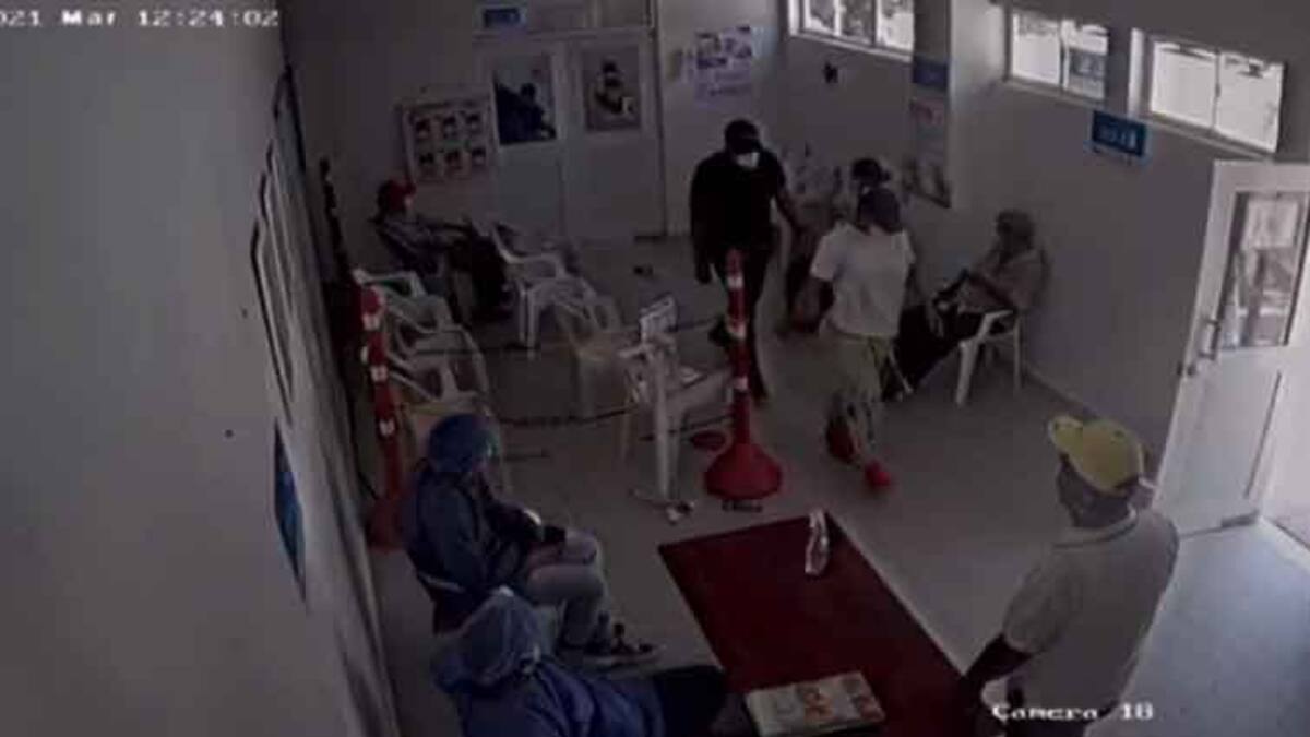 Con una actitud sigilosa y atendiendo las indicaciones de un hombre, llega hasta una sala donde se llevaría a cabo la inmunización.