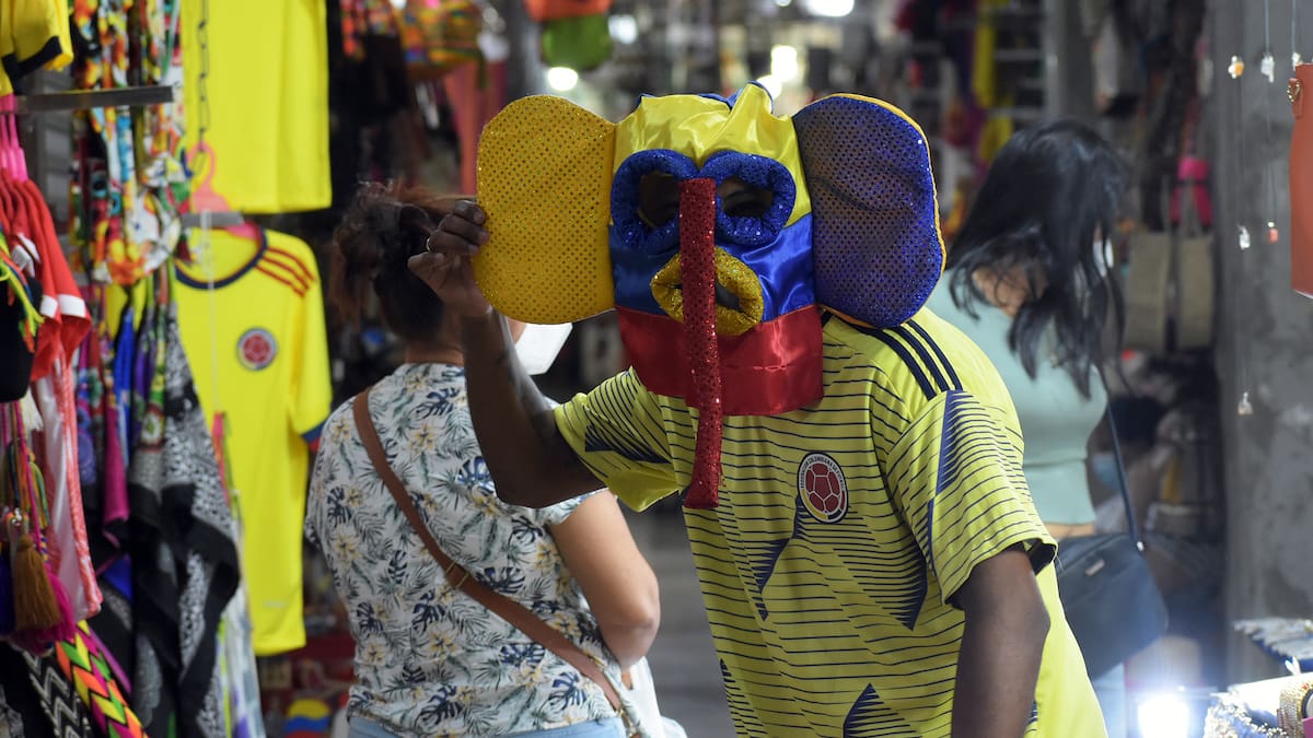 'Aquí se hacen todo tipo de cosas alusivas a la Selección, desde caretas de marimonda hasta tapabocas, alcancías, manillas y vasitos personalizados'. Rosa y Carlos esperan que sus negocios también se contagien de la fiebre tricolor.