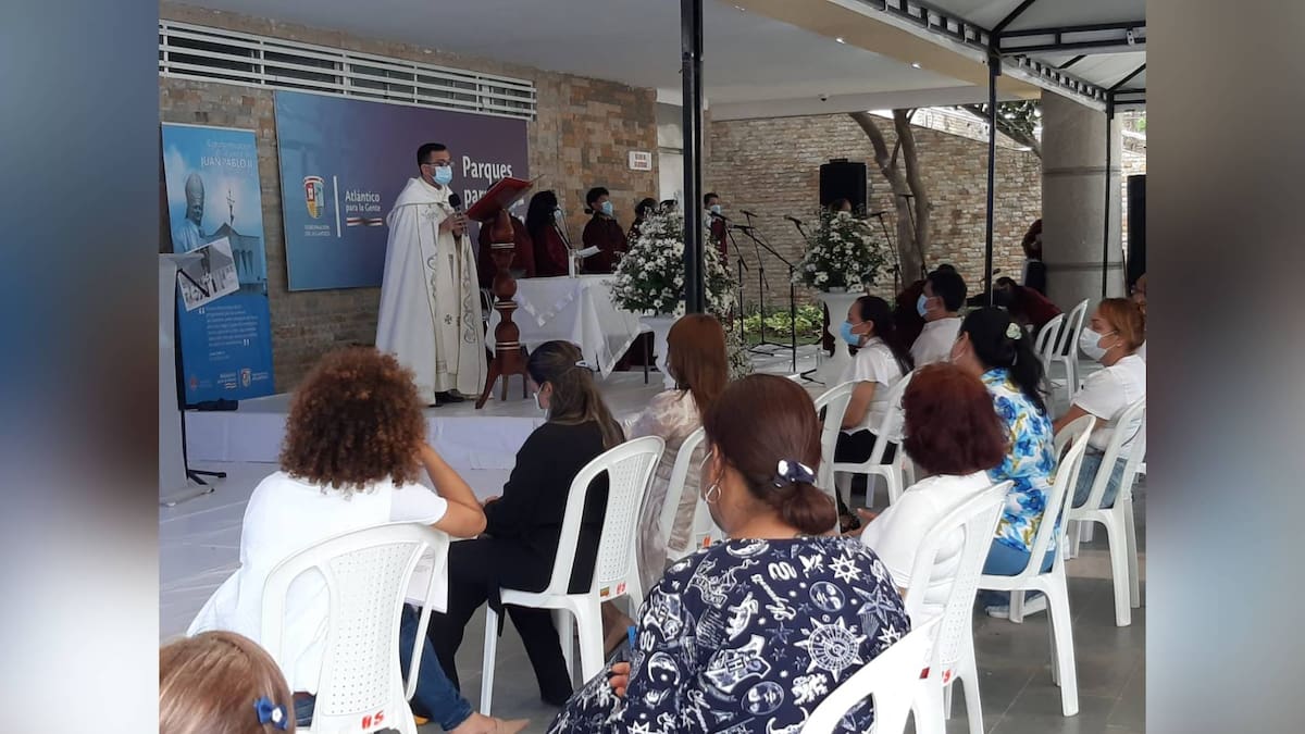 'Hace 35 años el papa Juan Pablo II visitaba a la ciudad de Barranquilla y desde el balcón de nuestra Catedral María Reina, inauguraba y bendecía esta hermosa plaza cuyo nombre evoca el deseo de todos los colombianos de tener una nación en paz y justicia para todos', expresó el sacerdote al iniciar la ceremonia.