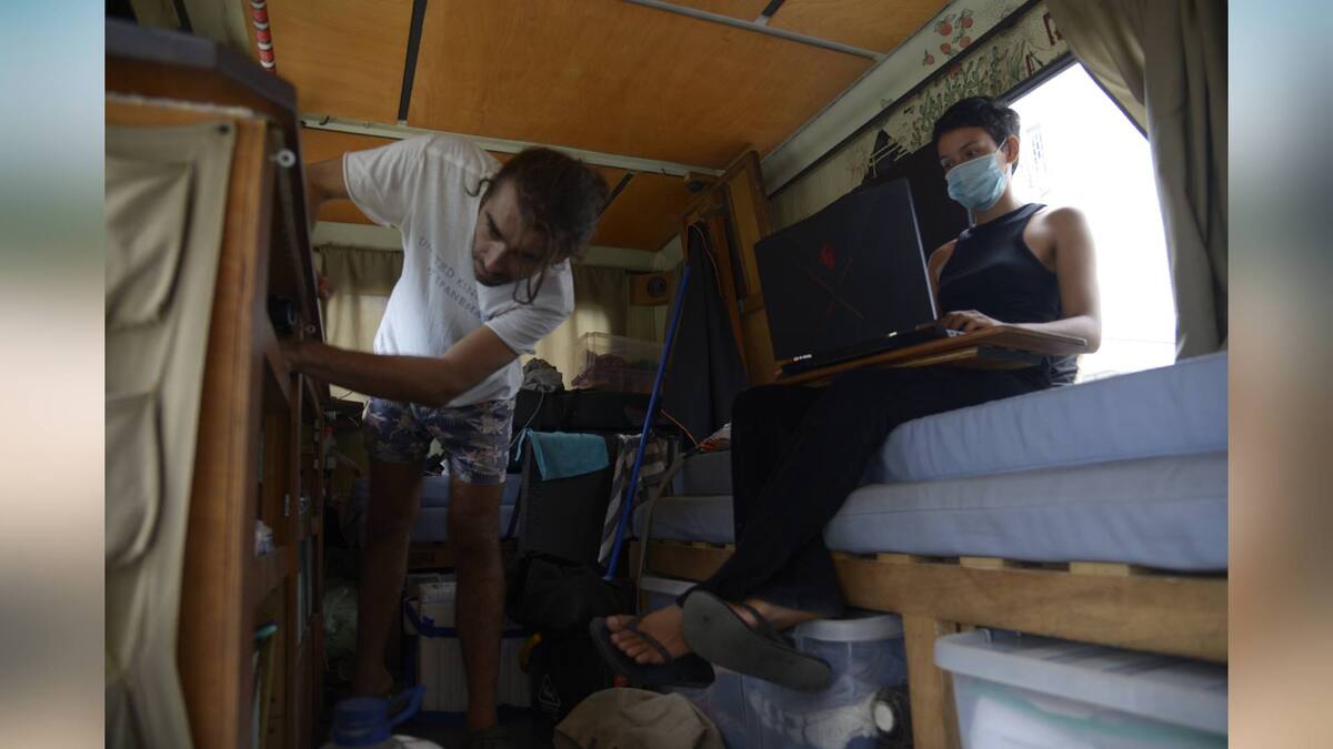 Viajando en un 'Bison'. El vehículo adaptado como una casa rodante recibe este nombre porque se asemeja, según Amarandei, a un mamífero parecido a 'una vaca enorme y peluda'. Sus sillas están acondicionadas como camas, pero no tienen baño.