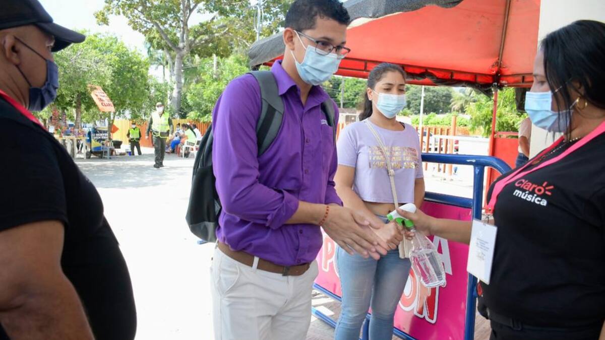 En el centro recreacional La Pedregosa, El Coliseo de Feria Ganadera y la Plaza Alfonso López el equipo de logística exige carné de vacunación y uso de tapabocas. Además vigilan en lavado de manos y realizan desinfección de manos con alcohol.
