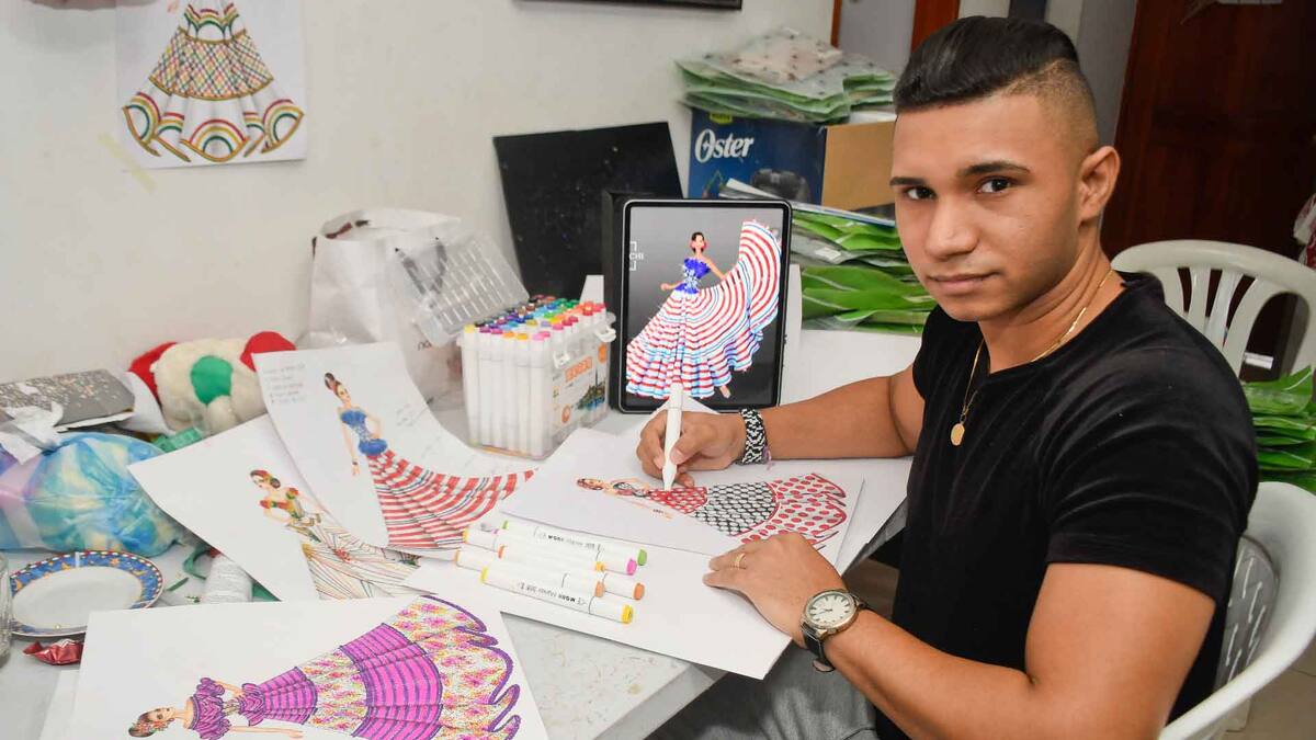 Jean Carlos Robechi es la mente creativa detrás de algunos diseños como este, que ha usado la reina de las carnestolendas en diferentes oportunidades. Sus manos se encargan de trabajar de manera muy cuidadosa cada destello que emana del traje. Su mirada no descuida detalle alguno.