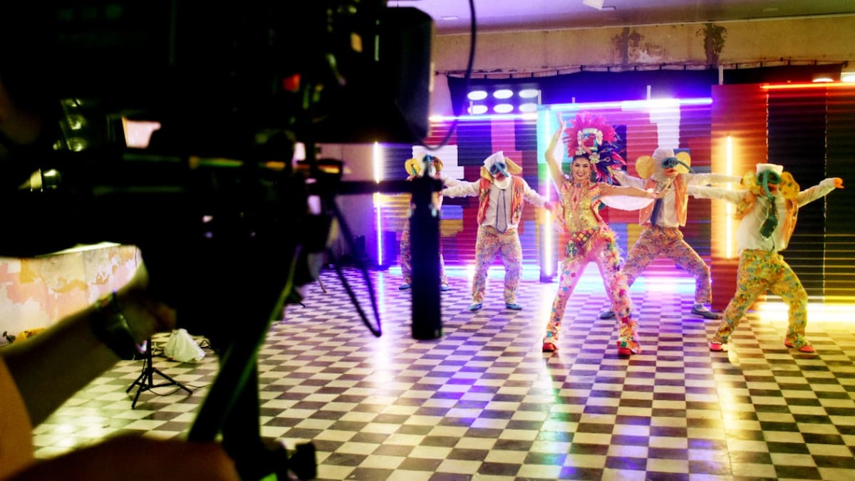 Vestida de ‘Fantasía de Marimonda’, como lleva por nombre el vestuario, inició Valeria Charris Salcedo, reina del Carnaval de Barranquilla 2022, el rodaje del videoclip de su canción oficial.