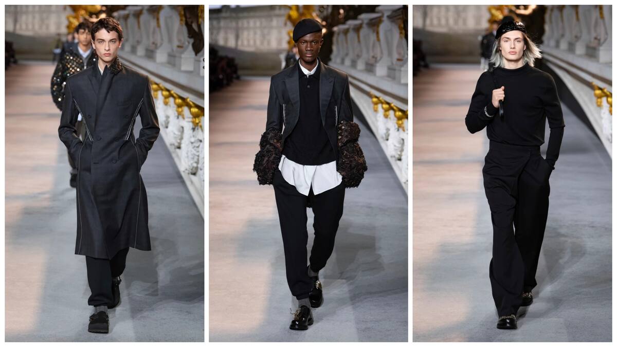 Kim Jones, el británico que dirige la línea masculina de Dior, hizo reproducir casi a escala el monumental puente de Alexander III con una panorámica fotográfica de la ciudad aunque algo retocada. El Grand Palais, la Torre Eiffel, el Museo de Orsay y los edificios más bonitos del muelle habían sido relocalizados para presentar un París 'aún más armonioso'. Este fue el cuadro elegido para mostrar una colección que, sobre todo, transmitió paz.