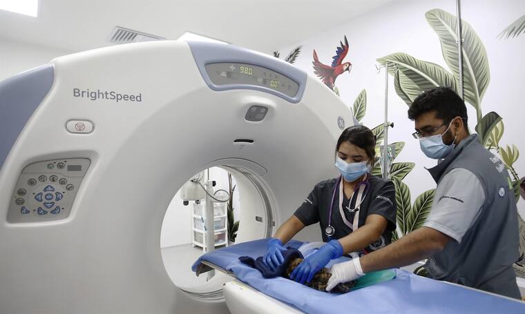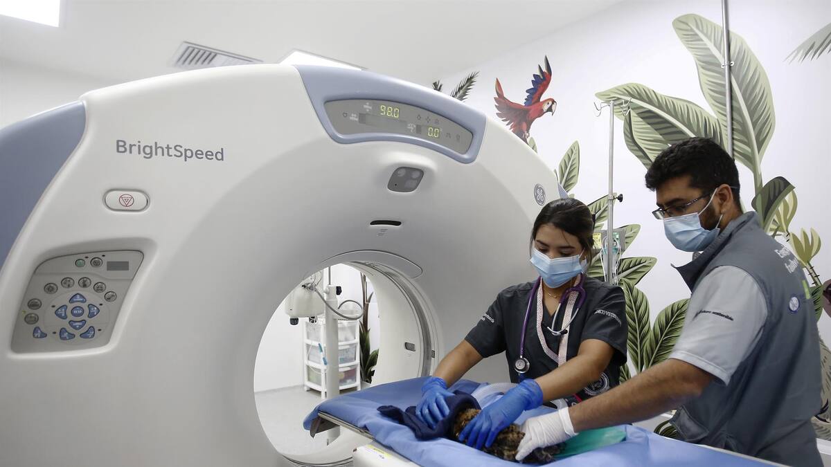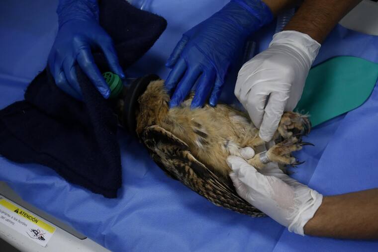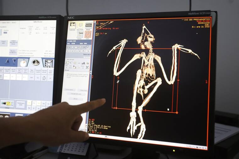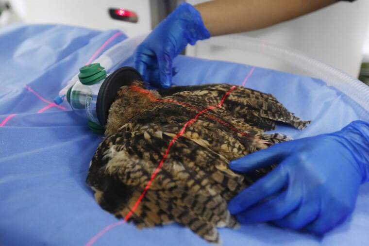 Tras una enfermedad en su sistema respiratorio pulmonar, veterinarios en Medellín practicaron una tomogafía a un búho rayado.