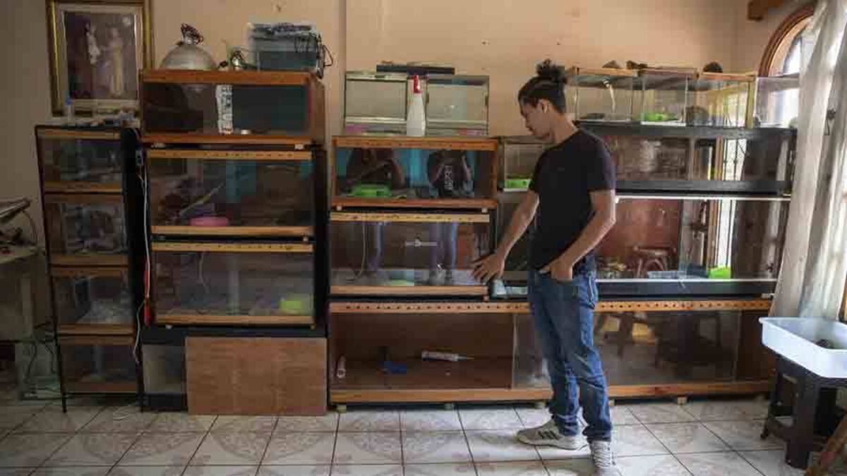 Delgadillo, un veterinario de 27 años que reside en Matagalpa, una ciudad del norte de Nicaragua, convive en su residencia con 45 serpientes de 15 especies —algunas muy venenosas como la barba amarilla—, a las que considera sus 'mascotas'.