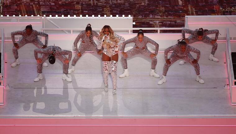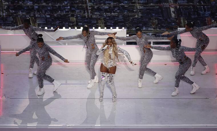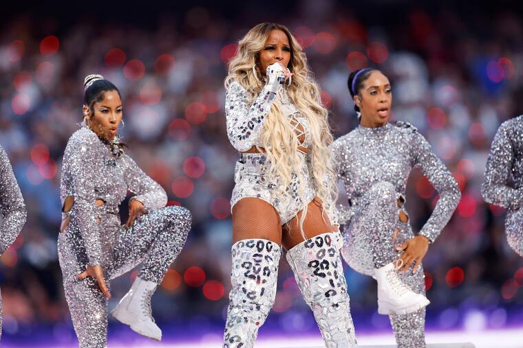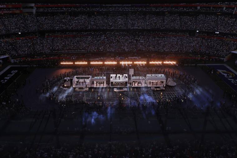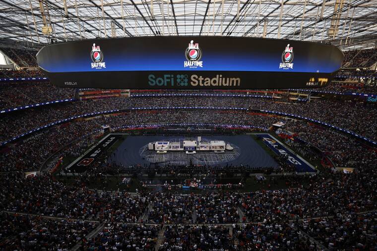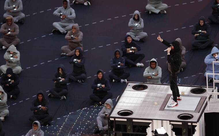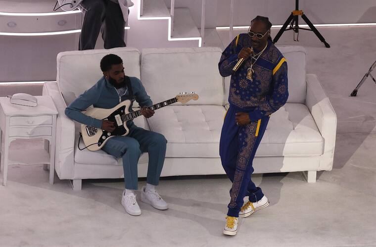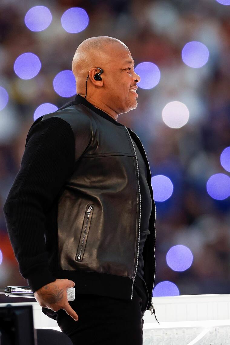 Los cantantes Eminem, Kendrick Lamar, Snoop Dogg, Mary J. Blige y Dr. Dre brillaron en durante la presentación en el SoFi Stadium en Inglewood, California.
