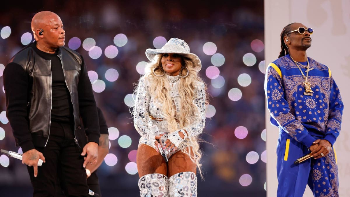 El orgullo del rap en el corazón del Super Bowl fue la apuesta de Dr. Dre y Snoop Dogg para su show de la final de la NFL, en el que tuvieron como invitados a estrellas del hip-hop como Kendrick Lamar, Mary J. Blige, Eminem y la aparición sorpresa de 50 Cent.