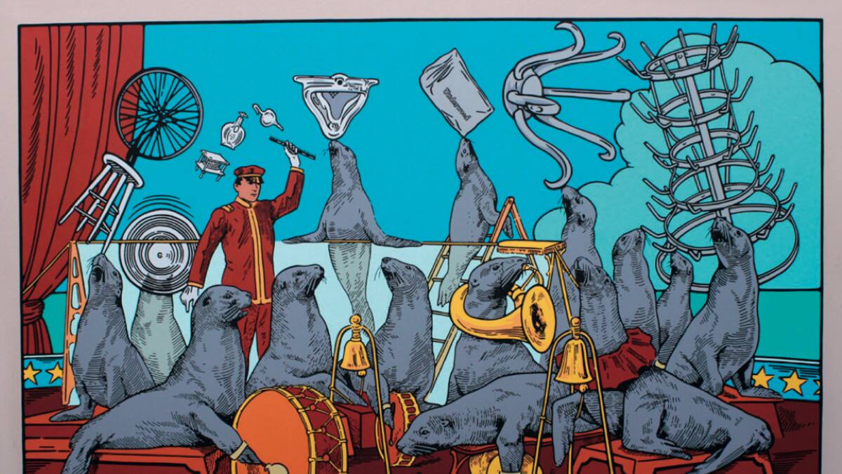 Una obra que tiene como actores principales a unas focas, que hacen parte de una orquesta y que son amaestradas por un director. Se puede apreciar el colorido que se vislumbra en los circos. Una creación que hace gala de su distinguido estilo convencional y ecléctico.