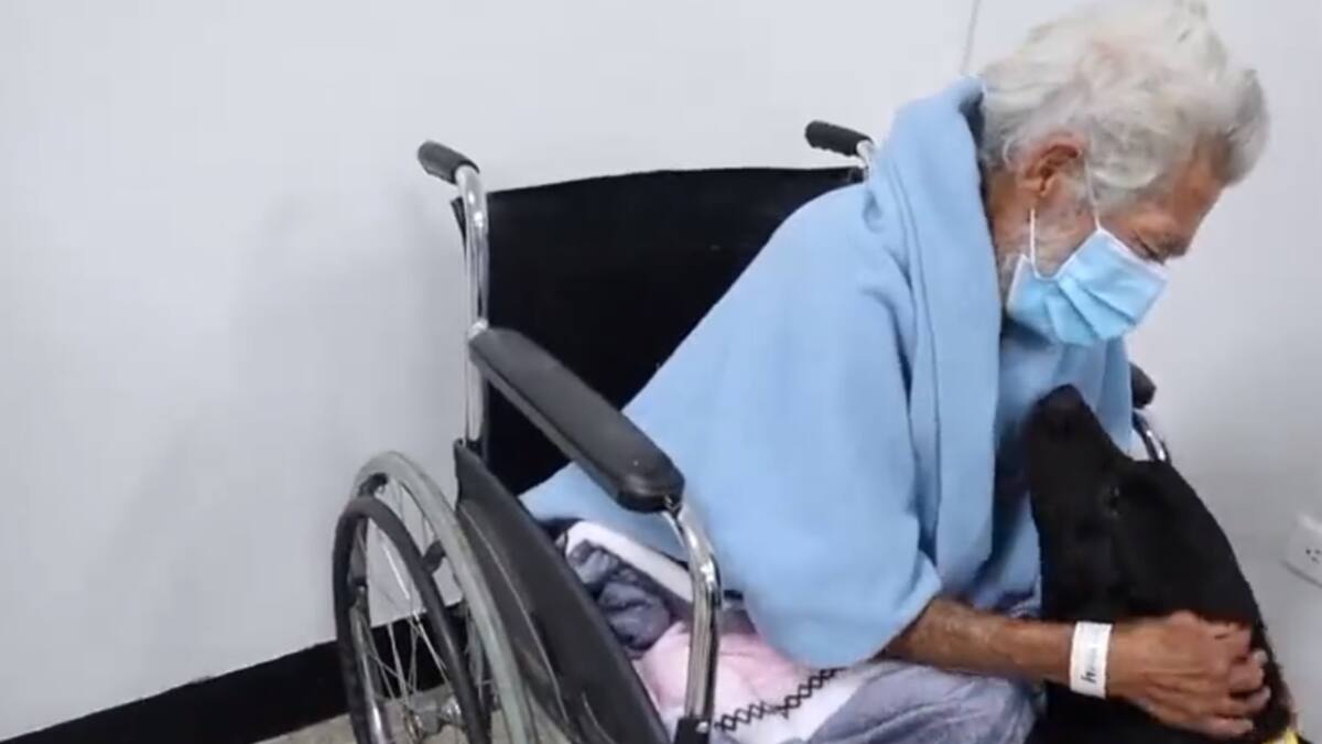 Adolfo es un adulto mayor que logró reencontrarse con su perro en Armenia, luego de varios días de estar internado en el hospital de San Juan de Dios.