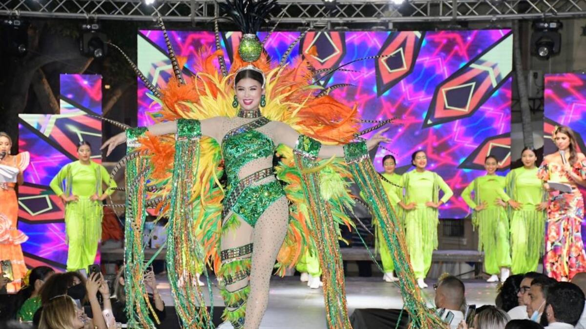 Charris Salcedo también mostró al público el vestido que usará en el martes del Carnaval. Un atuendo completamente negro, corto, hecho en tul, con plumas y lentejuelas. En la cabeza resaltaba un tocado con plumas. 'Clamor de viuda eterna', el nombre del vestuario.
