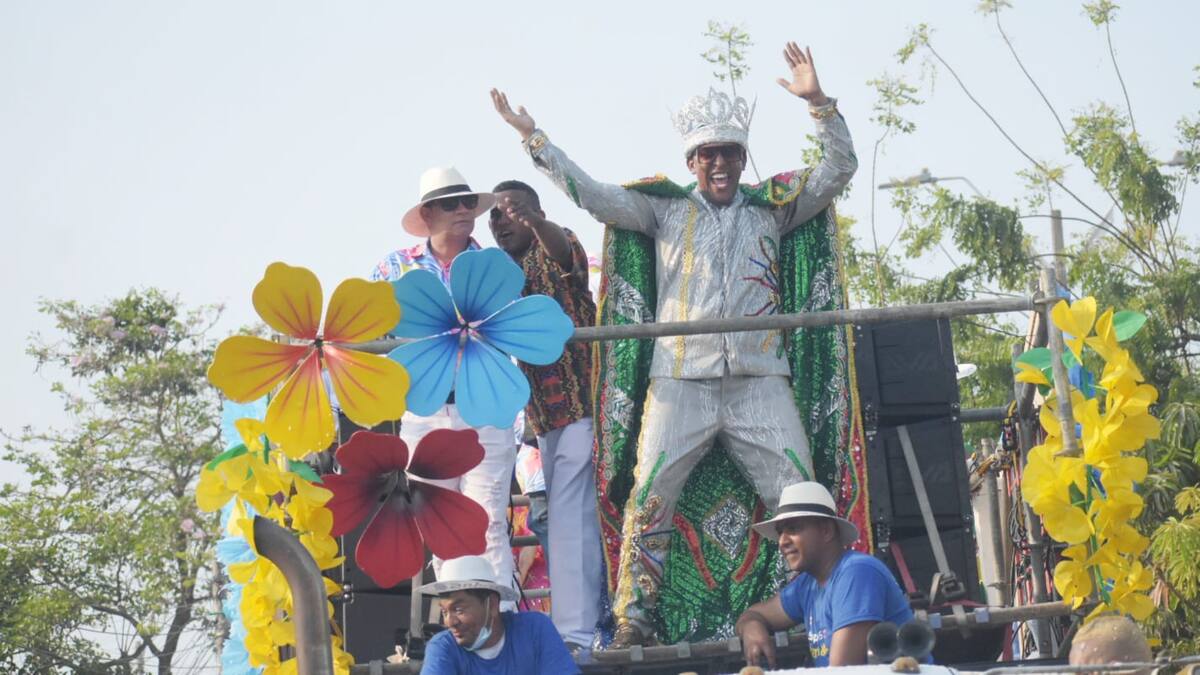 'Estamos volviendo a encontrarnos en el Carnaval de la vida, de la reactivación y de volver a creer', dijo el gran anfitrión desde su carroza, agradeciendo también por el homenaje a esta figura del Carnaval, que hace parte de la fiesta autóctona de la ciudad desde hace 27 años.