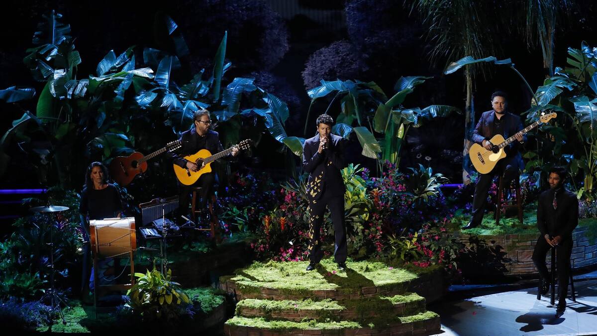 Durante su interpretación, Yatra estuvo acompañado por varios músicos que tocaban la guitarra, además de una pareja de bailarines que lucían un el tradicional traje del folclor colombiano.