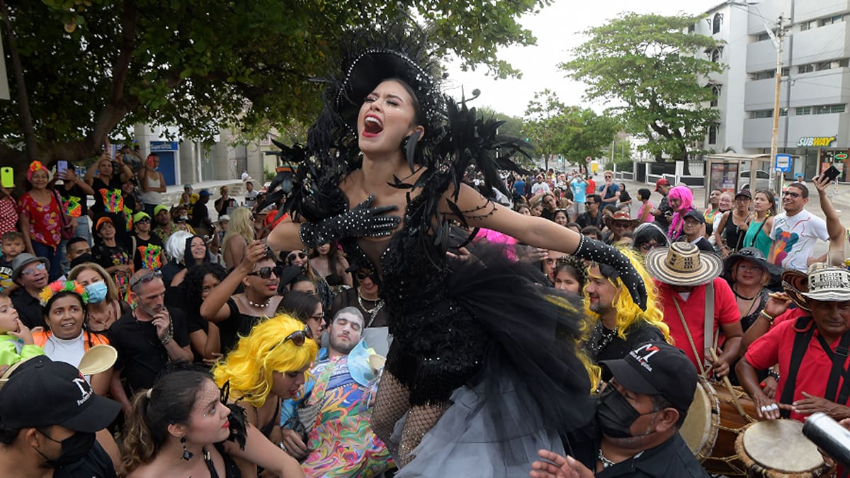 El recorrido fue encabezado por la reina Valeria Charris Salcedo con su atuendo ‘Clamor de una viuda eterna’, una creación de las estudiantes de Diseño de Modas y Alta Costura de la Universidad Autónoma del Caribe.