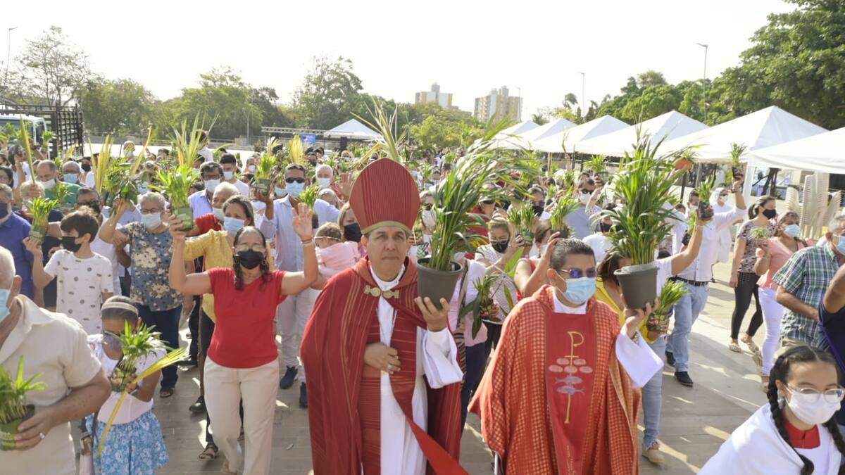 En medio de una nueva normalidad, la procesión volvió a tomarse las calles en Barranquilla. Desde las 7:30, los fieles se concentraron en la Plaza de la Paz para iniciar con la bendición de los ramos que este año no tuvo como protagonistas a las palmas y en su reemplazo se presentaron otro tipo de plantas.