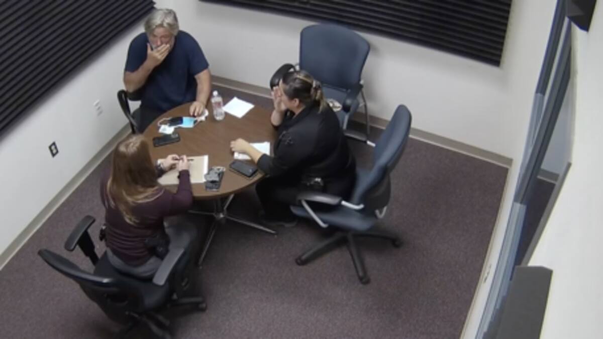 En la grabación se ve cómo el estadounidense queda en estado de shock, mientras las otras dos mujeres que se encontraban en la sala le preguntan si necesita ayuda con algo.