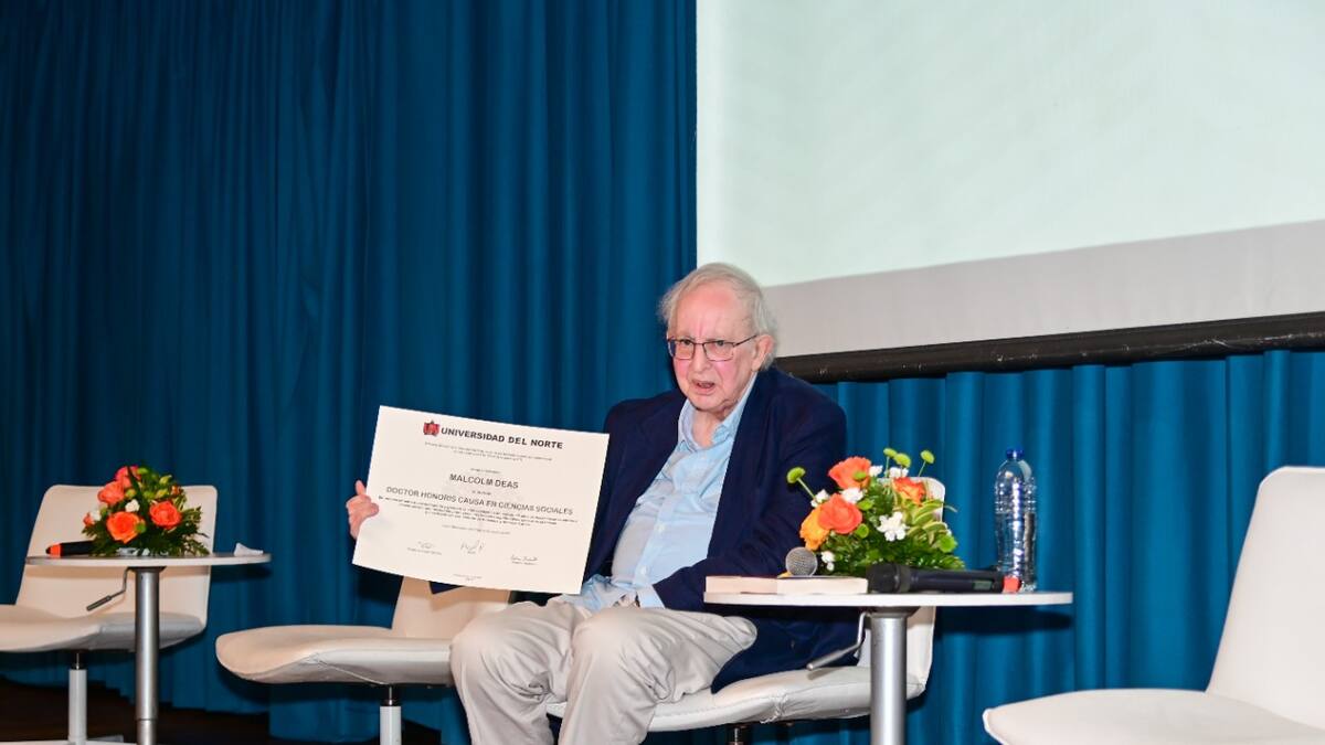 El pasado miércoles 27 de abril, en la ciudad de Barranquilla, la universidad del norte otorgó la distinción de Doctorado Honoris Causa en Ciencias Sociales a Malcolm Deas.