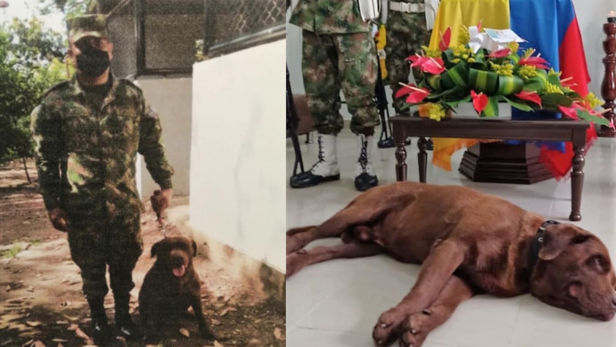 Una conmovedora historia se vivió en Villavicencio, tras el lamentable fallecimiento del soldado Andrés Vargas, luego de que su más fiel amigo y acompañante de misiones, Rocky, un labrador chocolate, no se separara del ataúd del uniformado durante las honras fúnebres.