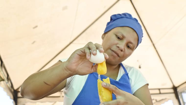 Hacia las 2:00 p.m., la matrona Magaly Carillo ya había acabado con seis cartones de huevos, lo que equivale a 180 arepas vendidas, más las que debía seguir cocinando.