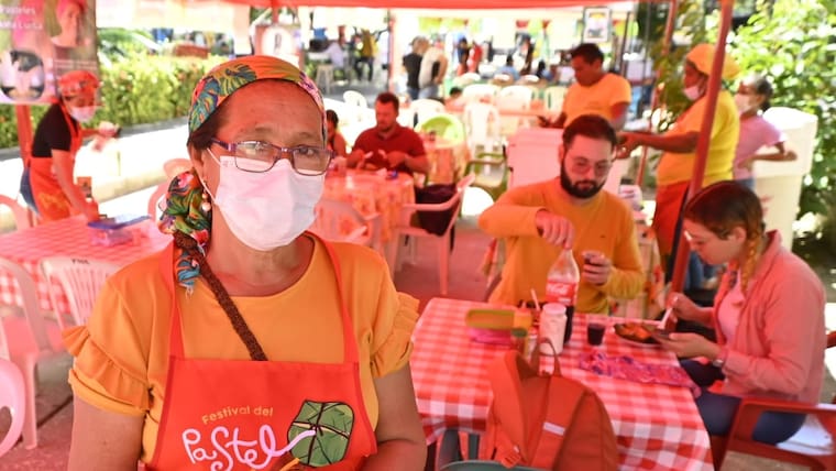 Su tipo favorito es el mixto, compuesto de pollo y cerdo. Esos pasteles eran ofrecidos por Paulina Coba, una de las matronas que integró el Festival y del que hace parte hace 20 años.