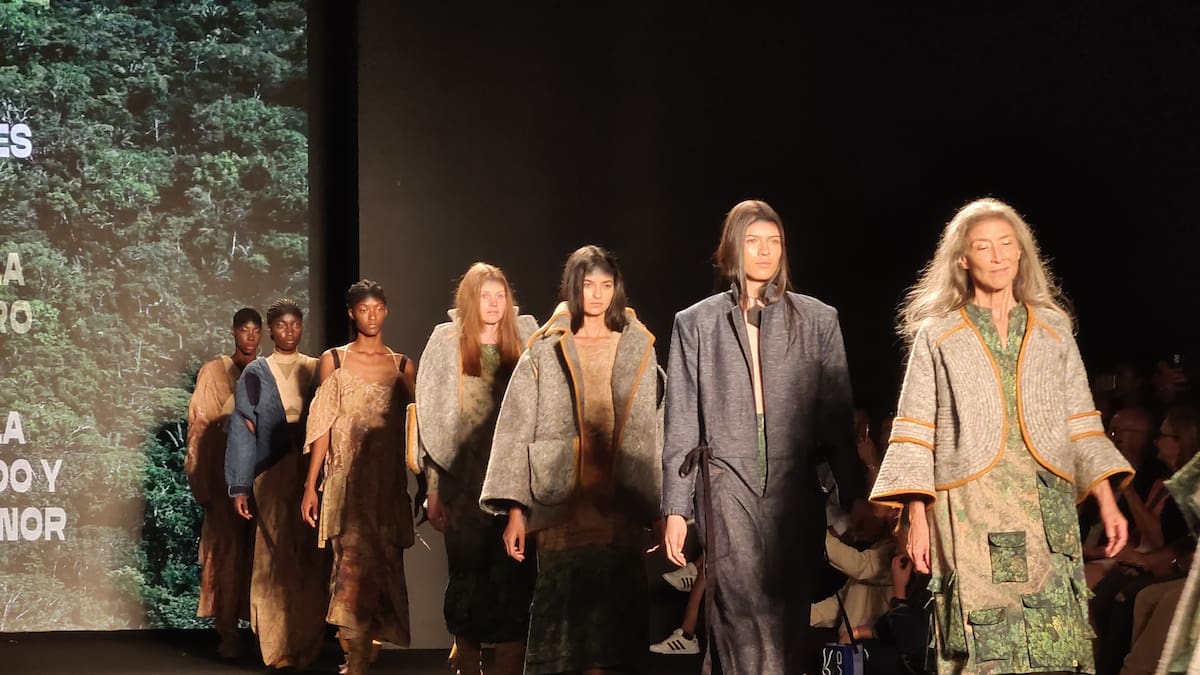 'La pasarela tiene tres momentos muy claros. Primero el calado, que es sustraer tejidos de un textil, evocando cuando sustraemos de la tierra; el ‘hand Stich’, que hace alusión a las cicatrices, entenderlas como una herida de la que aprende; y la cestería, una técnica que es un recipiente de la memoria, un lugar para compartir y reparar el tejido colectivo', recalcó Nicolás Rivero.