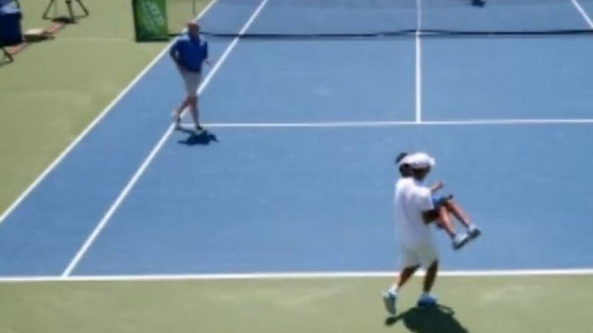 Al ver que el niño se iba sintiendo peor decidió soltar las raquetas para auxiliar rápidamente al menor y cargarlo con sus brazos. El público al ver la escena comenzó a aplaudir el gesto que tuvo este hombre.