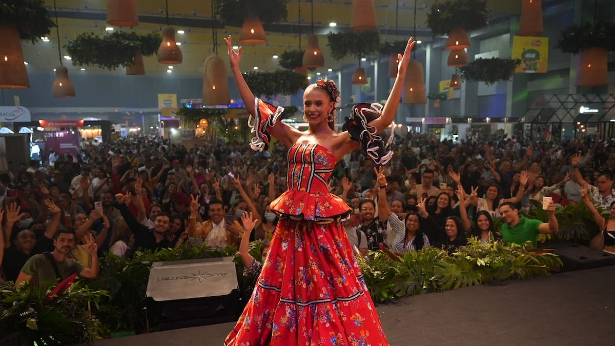 La Reina del Carnaval 2023, Natalia De Castro González, tuvo su primer encuentro con el público barranquillero la noche de este sábado en Sabor Barranquilla, despertando una ola de comentarios positivos por los dotes dancísticos que demostró en la tarima principal de la feria gastronómica, en la que estuvo acompañada por el canto de Juan Piña.