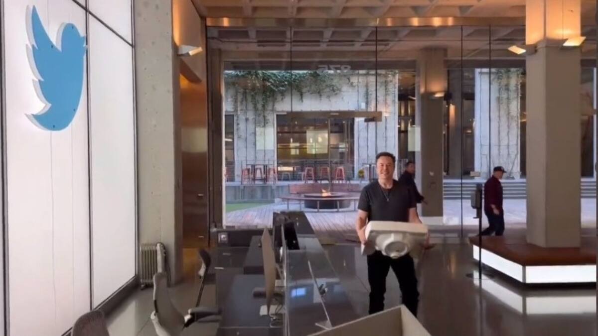 El empresario Elon Musk publicó este miércoles un video en el que se le ve entrar sonriente en la sede de Twitter, en San Francisco, EE. UU., con un lavamanos en sus brazos, dando a entender que la compra de la red social llegó a buen término.