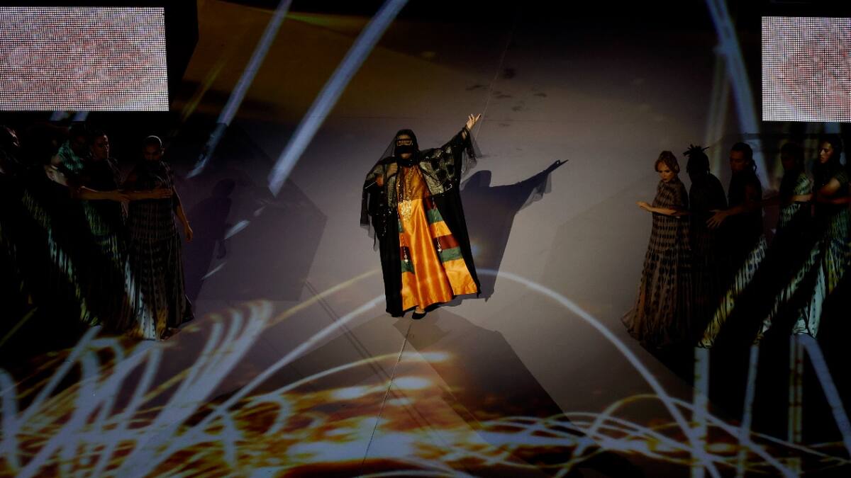 Su arribo en el escenario no pasó desapercibido para los más de 60 mil espectadores que estaban en el escenario y aquellos que observaron el evento alrededor del mundo, pues la mujer, apareció con el rostro cubierto mientras cantaba en compañía de su compatriota Fahad Al-Kubaisi y el surcoreano Jungkook, de BTS, los únicos en amenizar la ceremonia.
