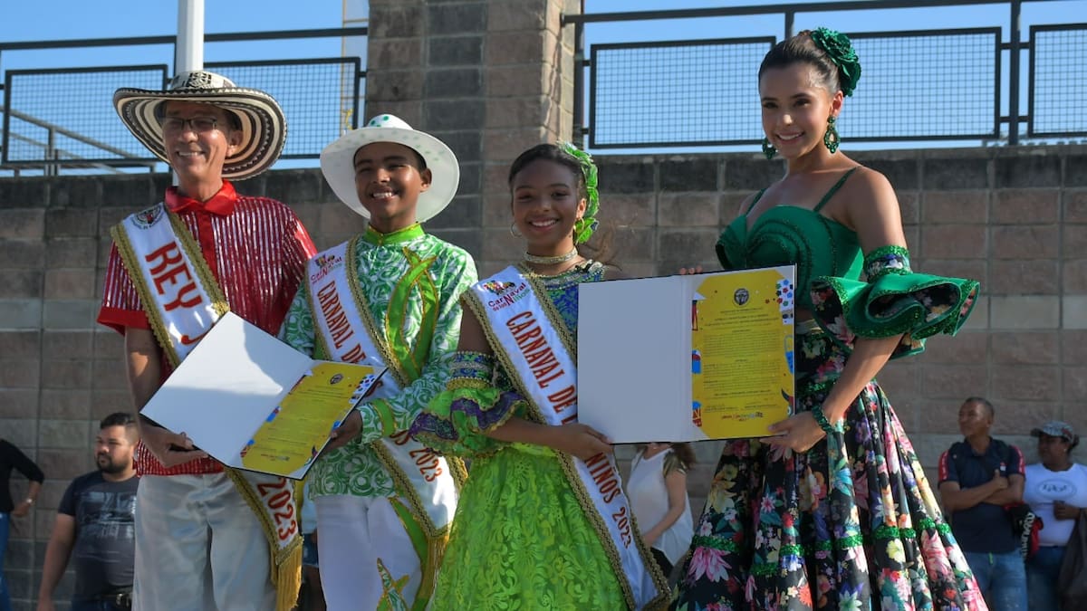 Posteriormente, los anfitriones del momento subieron a tarima para recibir el decreto y las bandas que los acreditan como reyes del Carnaval de los Niños 2023, de manos de Natalia De Castro González y Sebastián Guzmán. 'Gracias a todos los que nos acompañaron. Estoy muy feliz de recibir este decreto en este barrio donde está mi cultura y mi tradición. Que este Carnaval sea un hit para que todos los niños se lo gocen como es', indicó Tahiana Rentería.