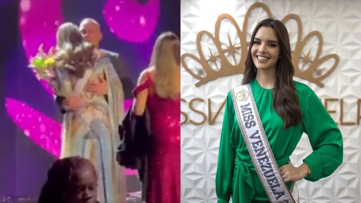 Amanda Dudamel, Miss Venezuela, se fundió en un abrazo con su padre una vez terminado el certamen.