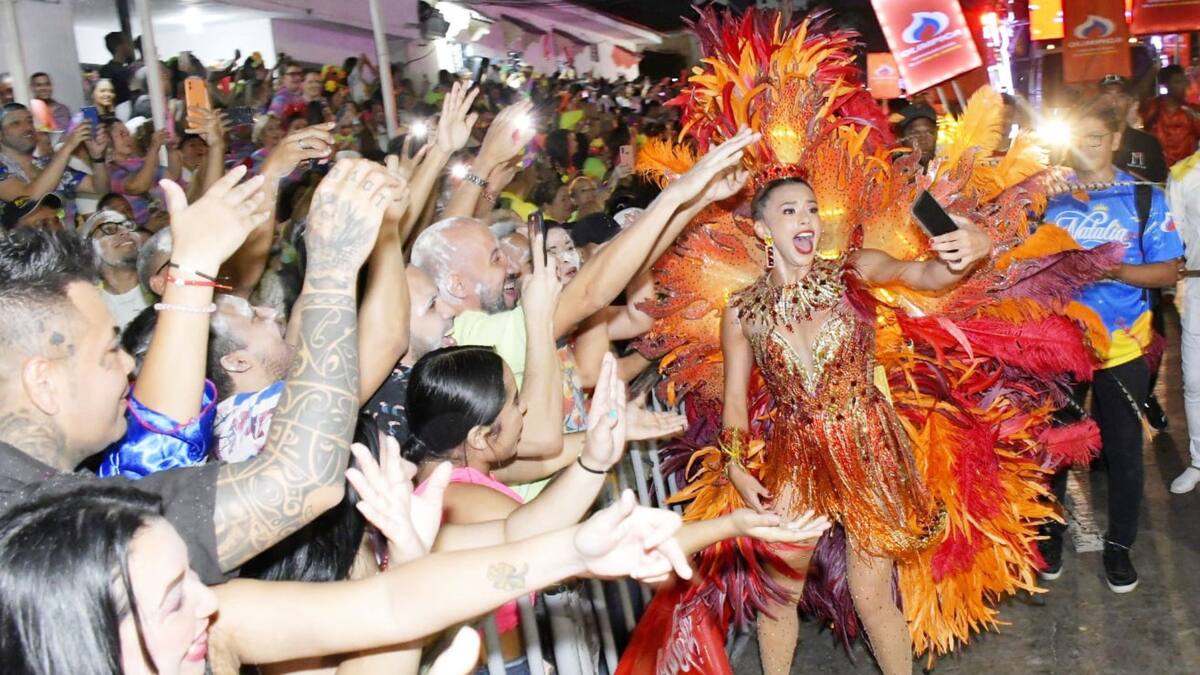 Uno de los momentos más esperados fue el paso de la reina del Carnaval de Barranquilla, Natalia de Castro, quien a su paso derrochó alegría y fue pura candela.