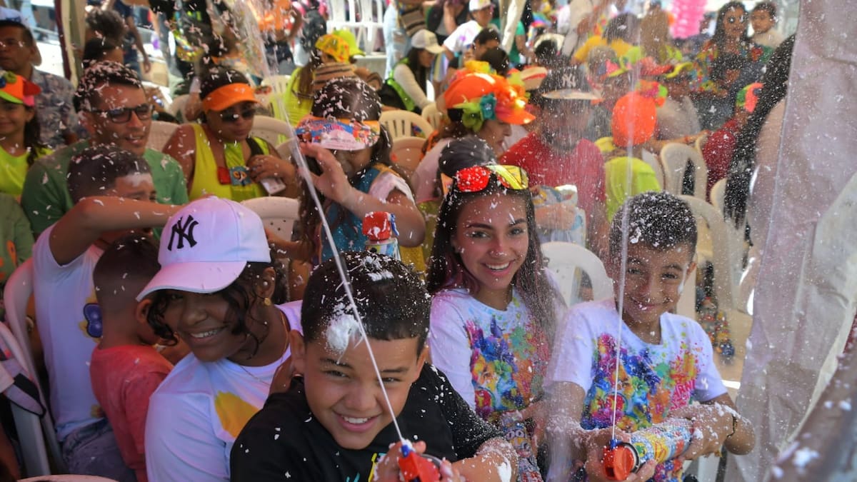Con espuma y pintas carnavaleras, los niños pintaron la alegría y se emocionaron con el colorido que protagonizó este tramo de La Arenosa.