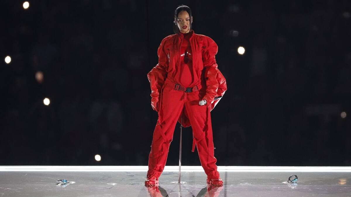 Por todo lo alto -literalmente- fue la presentación de Rihanna en el show de medio tiempo del Super Bowl.