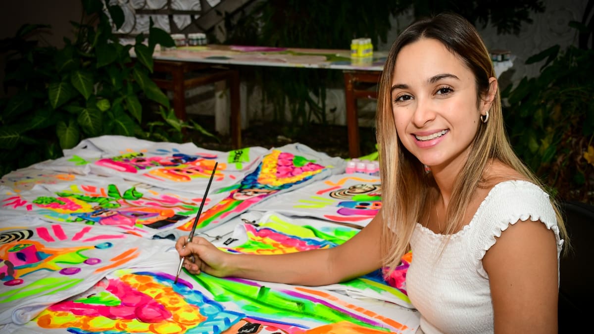 Rodeada de cientos de frascos de pintura que completan una pared del estudio de arte de su casa, Isabella Garman, una barranquillera al 200%, usa sus pinceles para pintar su vida a full color.