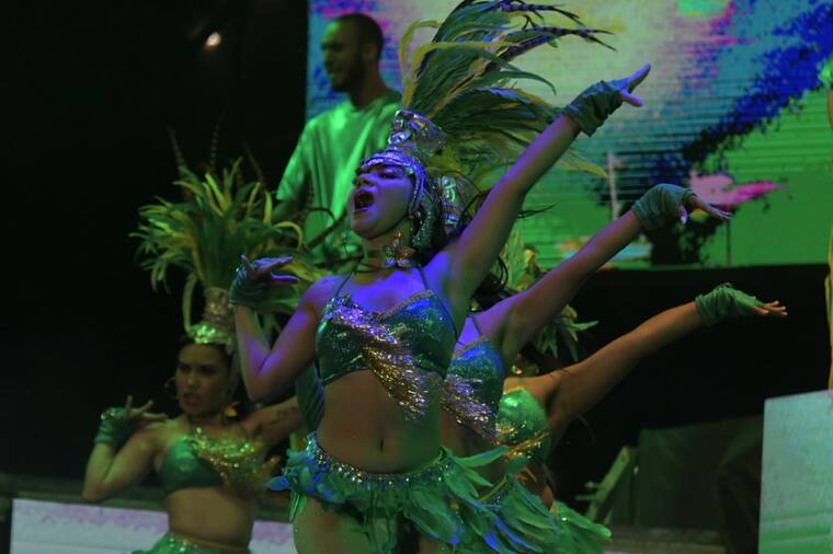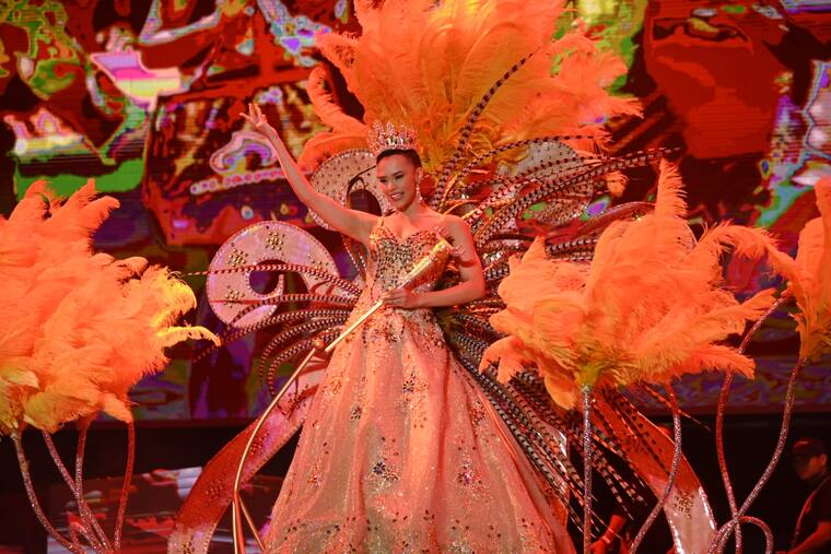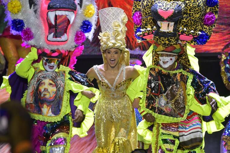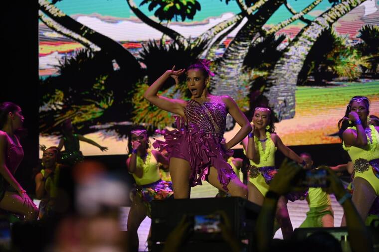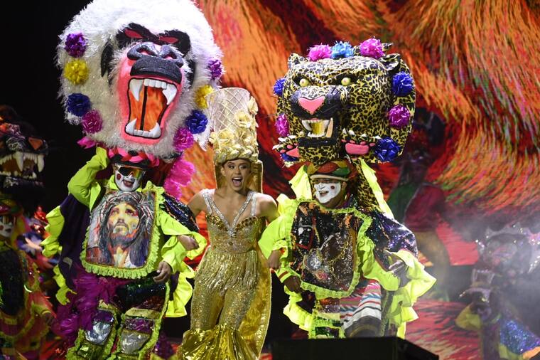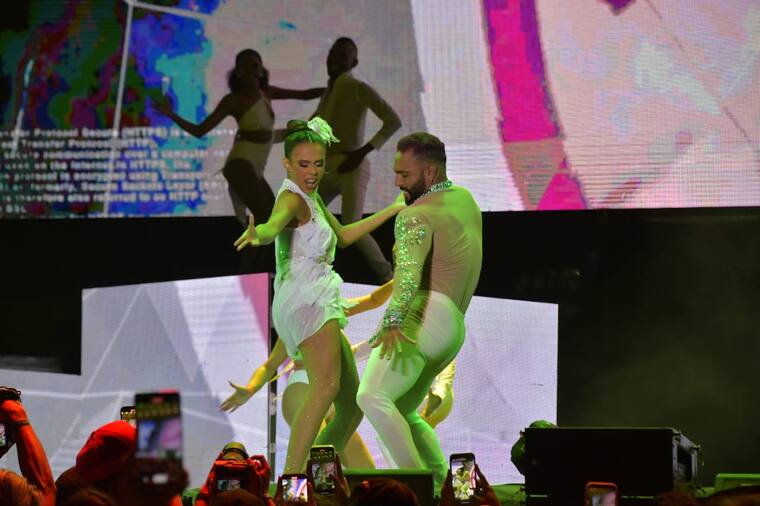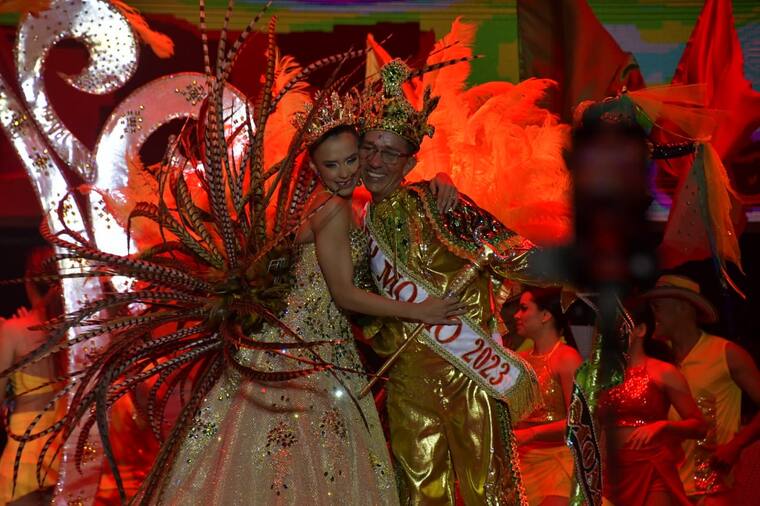 Cientos de personas se dieron cita en el Estadio Romelio Martínez para la coronación de la reina Natalia de Castro y el rey momo Sebastián Guzmán.
