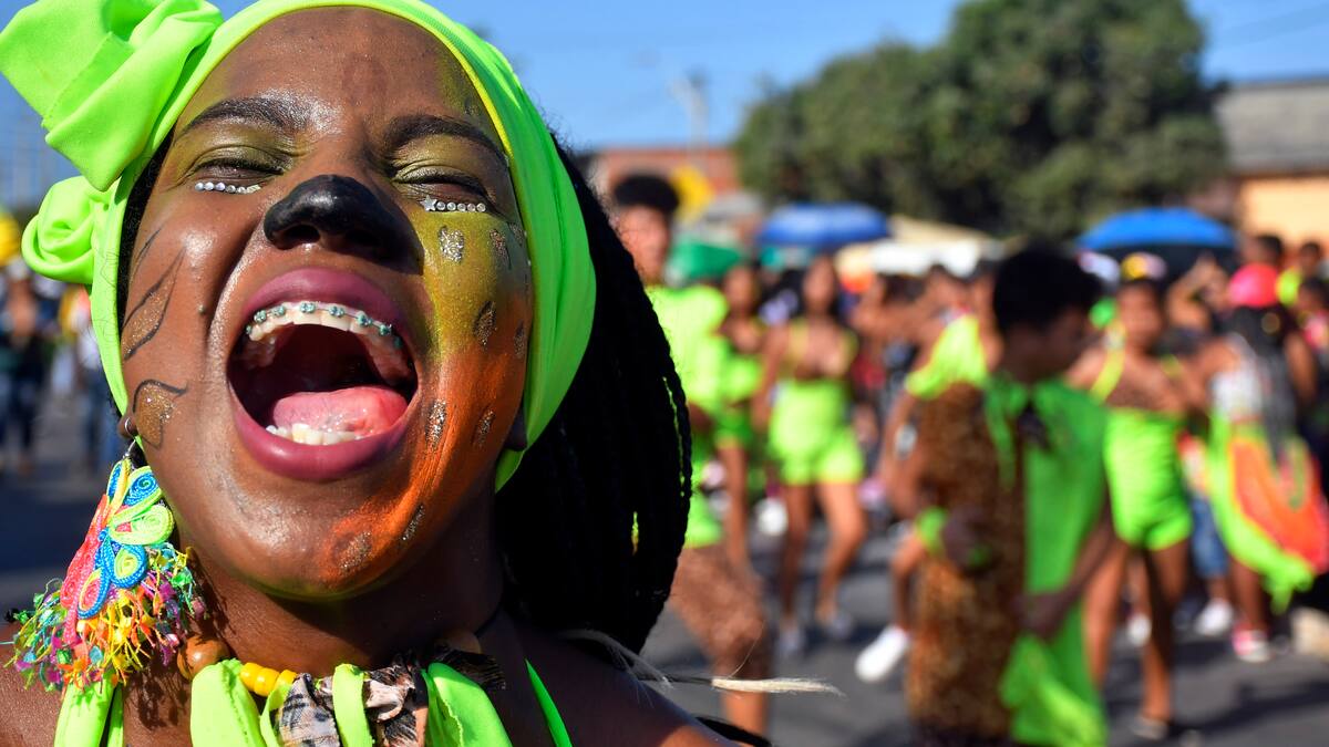 La herencia africana destacó en el desfile de la 17, acompañando al rey momo del Carnaval 2023, Sebastián Guzmán Gallego.