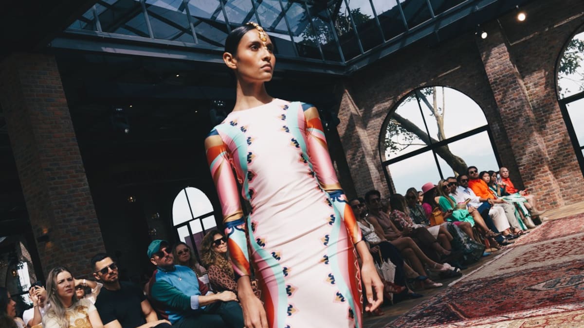 La pasarela contó con 45 salidas en las cuales se narró todo el universo de la firma, con siluetas fluidas, looks para toda ocasión especial y un gran cierre con la línea atelier de trajes con un gran trabajo de bordados hechos en La India y Medellín.