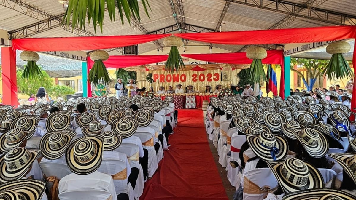 En las imágenes se observa a los graduandos de la Institución Álvaro Ulcue Chocue luciendo sus uniformes escolares y orgullosos de portar el sombrero vueltiao, una prenda de vestir típica de la región Caribe que tiene su origen en la cultura del pueblo Zenú, que habita en el municipio de Tuchín.
