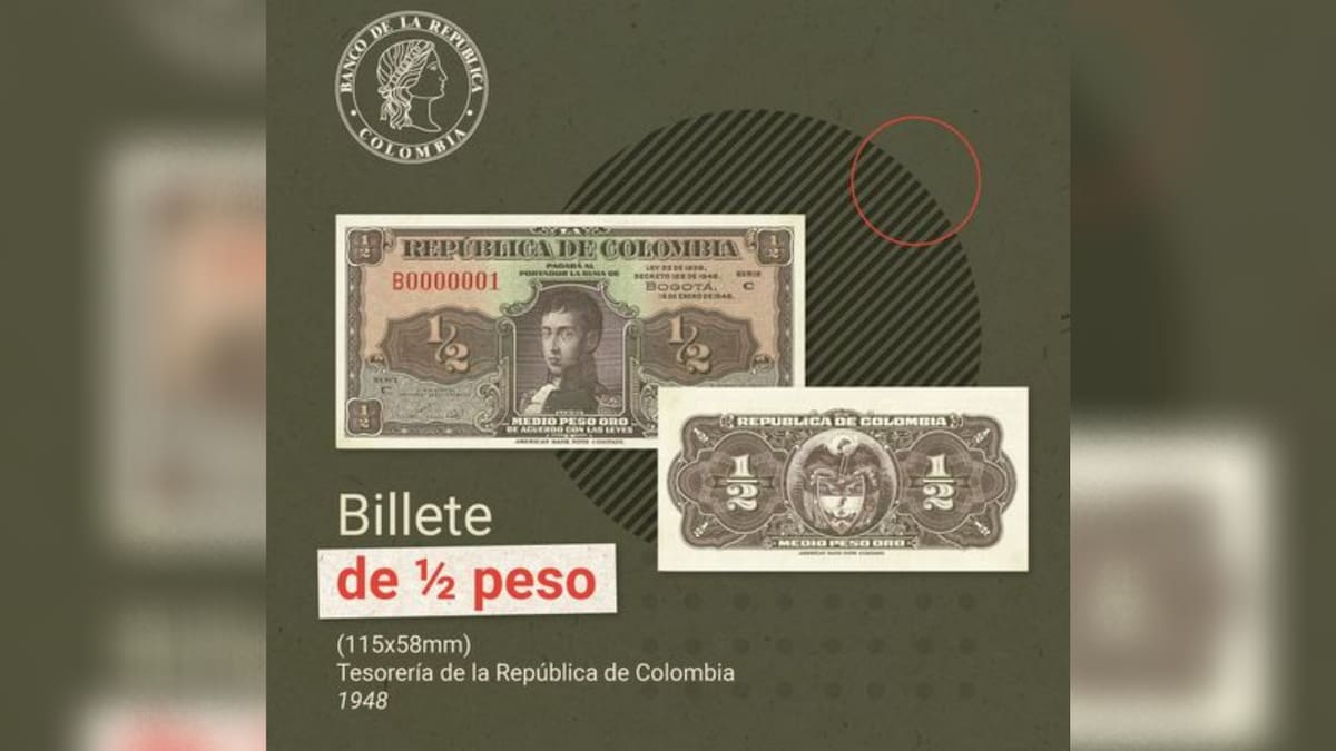 Según lo afirma el Banco de la República, el billete de medio peso (1/2) colombiano fue fabricado por la Compañía Estadounidense de Billetes.