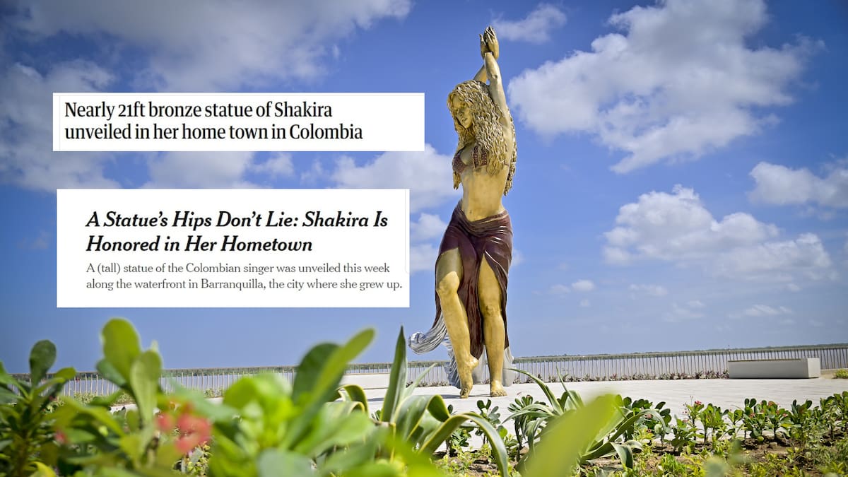 El periódico estadounidense NYT tituló: 'A Statue’s Hips Don’t Lie: Shakira Is Honored in Her Hometown' (Las caderas de una estatua no mienten: Shakira es honrada en su ciudad natal). En el artículo se destaca que con la gigantesca obra del maestro Yino Márquez, turistas de todo el país ya se habían congregado en el Malecón de Barranquilla 'para ver el nuevo hito y tomarse selfies. Muchos elogiaron lo que vieron como la precisión de la escultura y su importancia para los colombianos', se lee en el artículo.